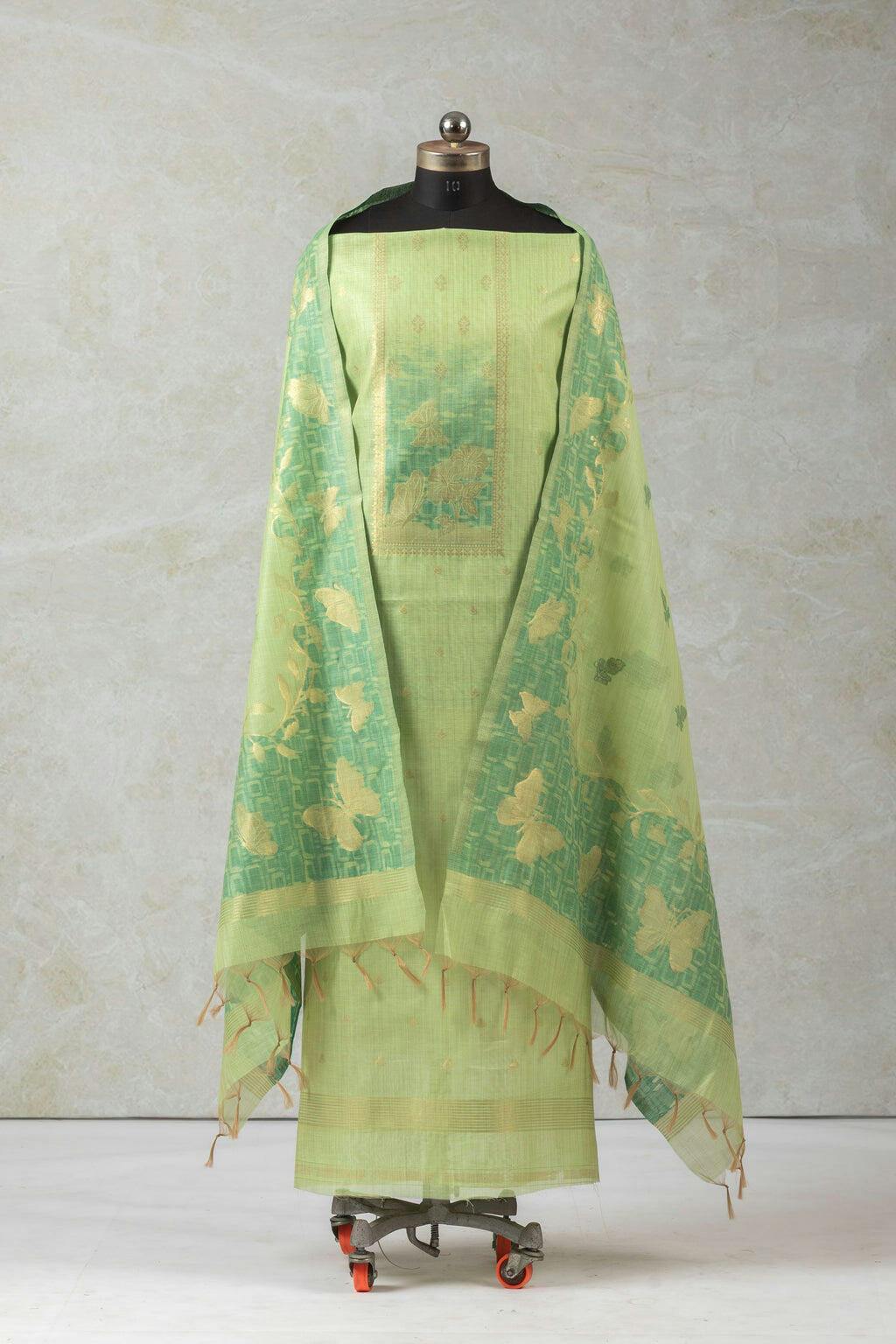 Teal Trails Jamdani Linen Cotton Suit Piece