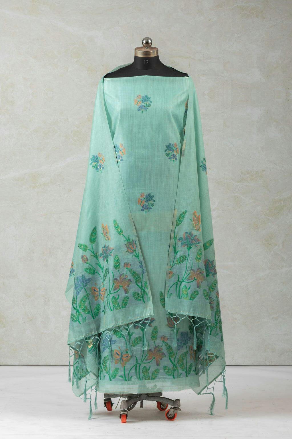 Bloom & Blue Jamdani Munga Cotton Suit Piece